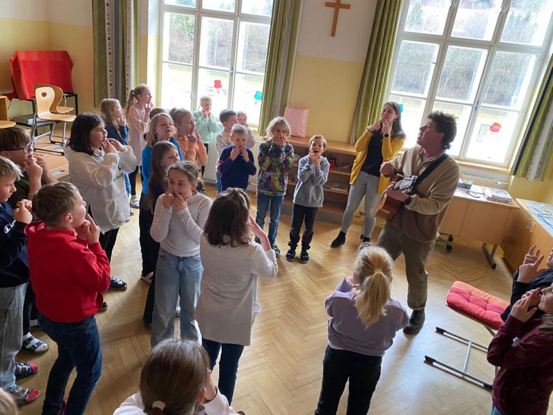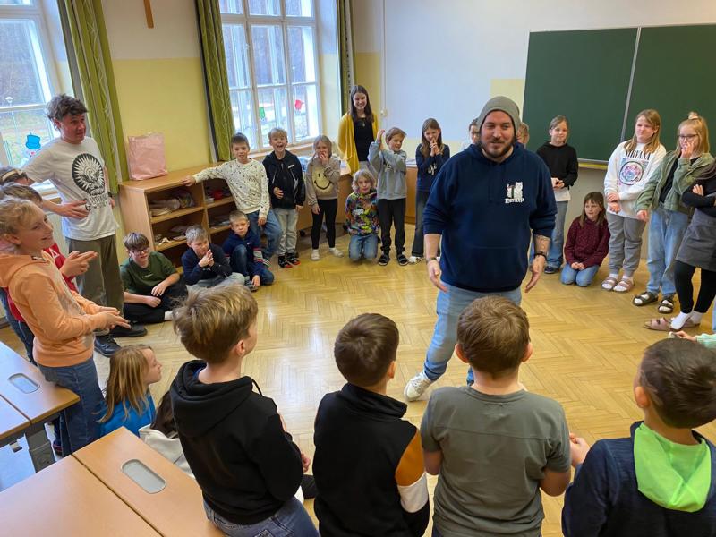 Unsere Viertklässler hatten besonderen Besuch: Native Speaker Josh und Dan gestalteten eine Woche lang spielerischen Unterricht, bei welchem das freie Sprechen im Vordergrund stand – ganz nebenbei wurde unglaublich viel Englisch gelernt!