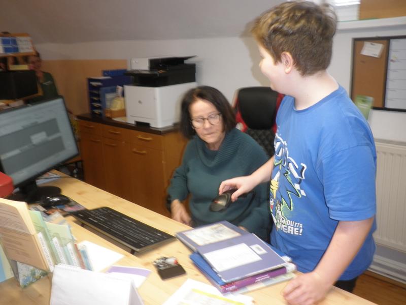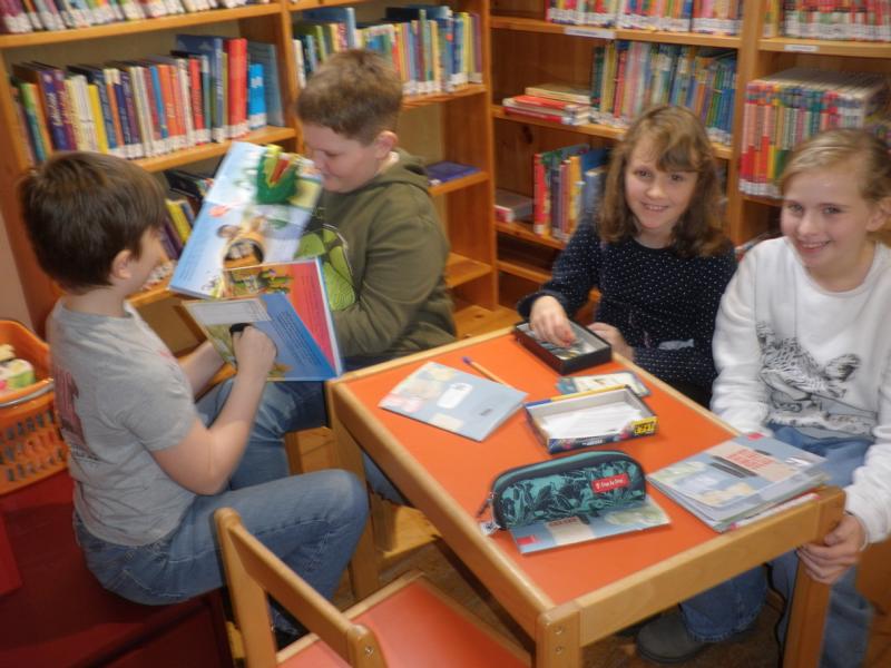 Die 4. Klasse war vor den Semesterferien zu Besuch in der Pfarrbücherei und dort als Biblio-Bande unterwegs. Die Kinder lernten die Bibliothekssystematik kennen, durften selber einscannen und stempeln, Bücher den verschiedenen Kategorien zuordnen und wieder auf den ursprünglichen Platz stellen sowie nach Lust und Laune im reichhaltigen Bücherangebot schmökern bzw. Gemeinschaftsspiele ausprobieren.