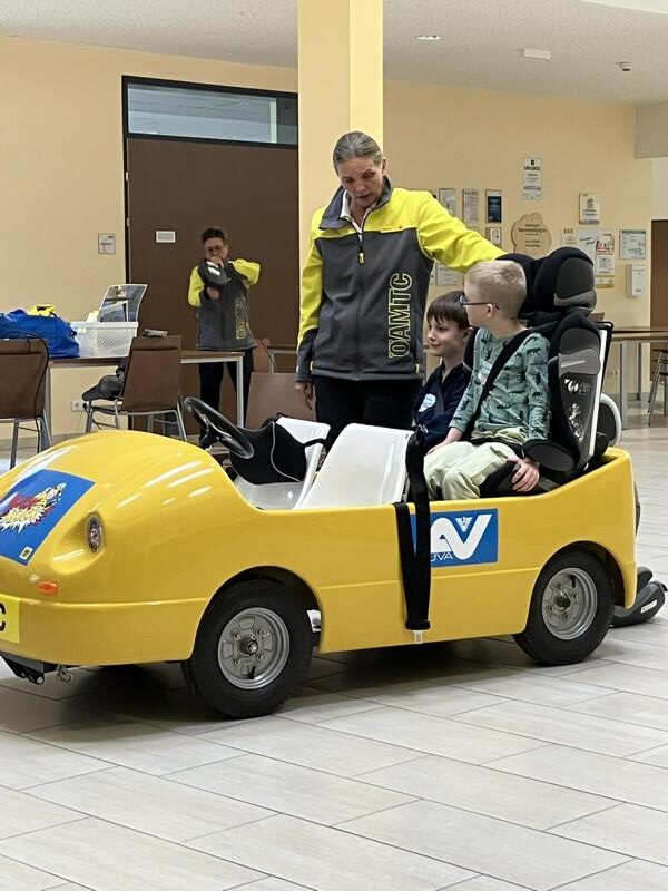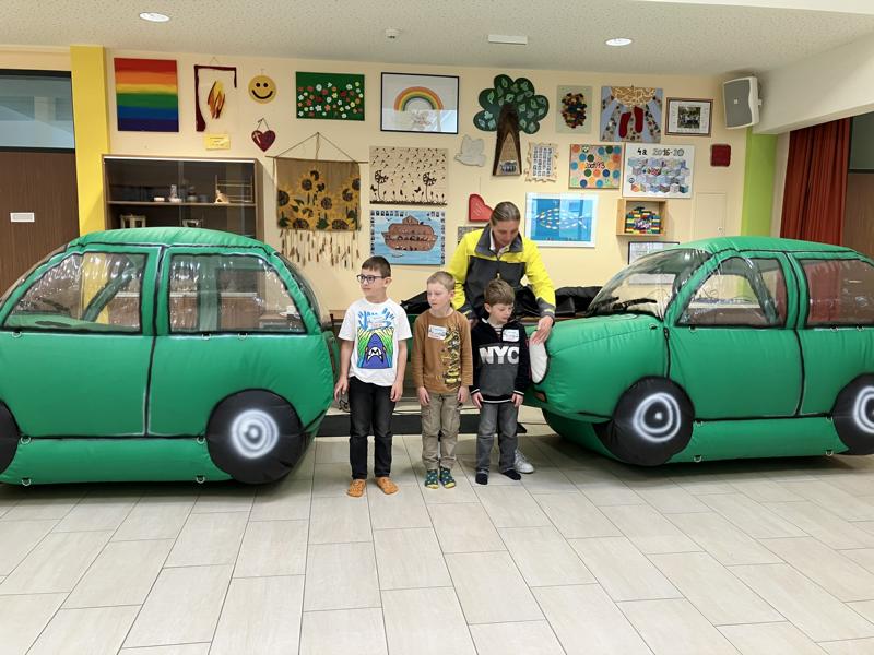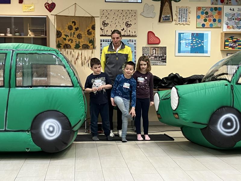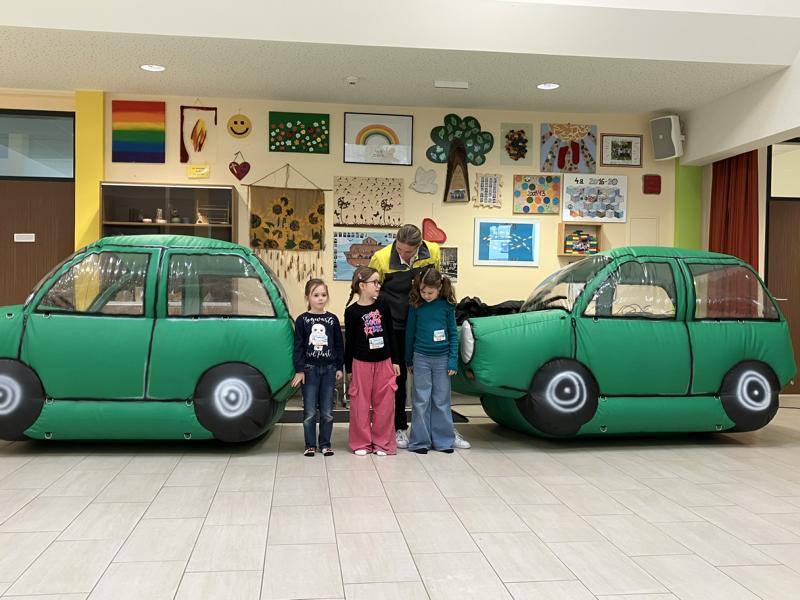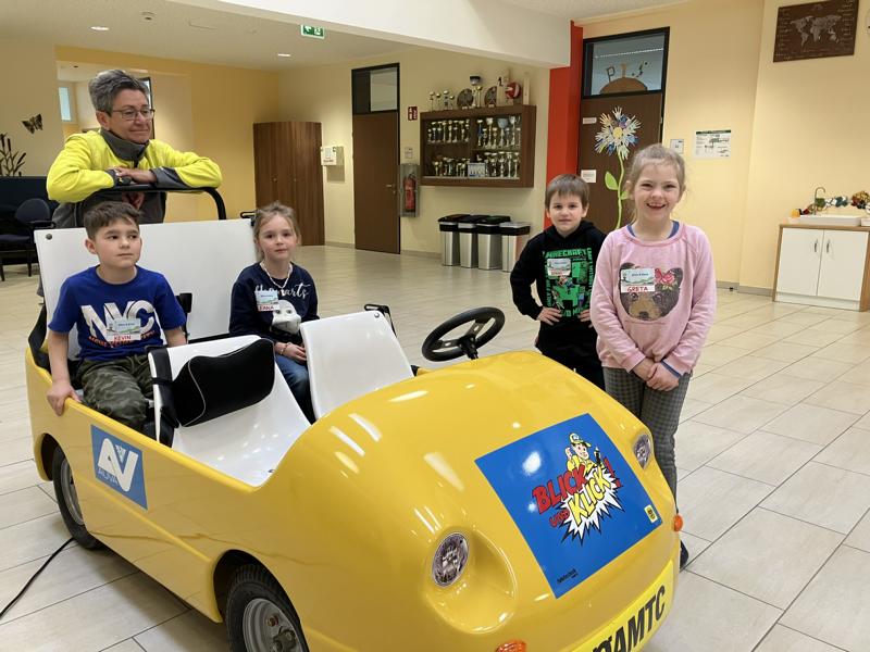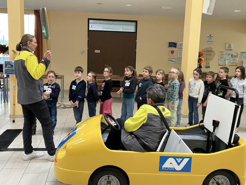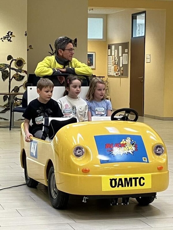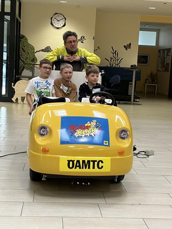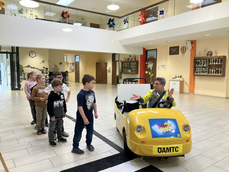 „Blick und Klick“ steht unter dem Motto „Lernen durch Erleben“. Die Aula der MS wurde für die Kinder der ersten und zweiten Klasse zu einer Straße umfunktioniert – mit einem speziellen Elektroauto wurden spielerisch Situationen simuliert, die Kinder alltäglich auf ihrem Schulweg erleben – ob zu Fuß oder im Auto als Mitfahrer. Das war ein sehr lehrreicher Workshop für unsere Schulkinder!